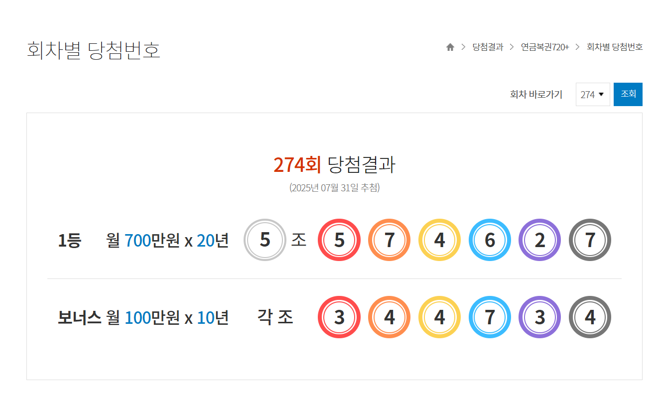 | 273회 연금복권 당첨 번호, 1등 당첨 판매점(1등 배출점), 당첨 결과 입니다 ( 저도 당첨 ) (2) | 2025.07.25 |
