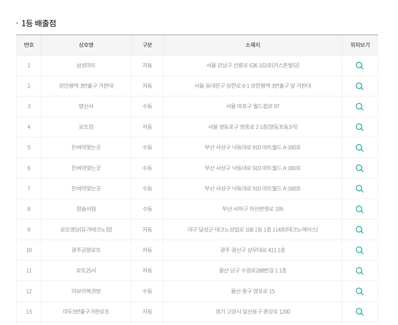 일단 1등에서 판매점 "돈벼락맞는곳"에서