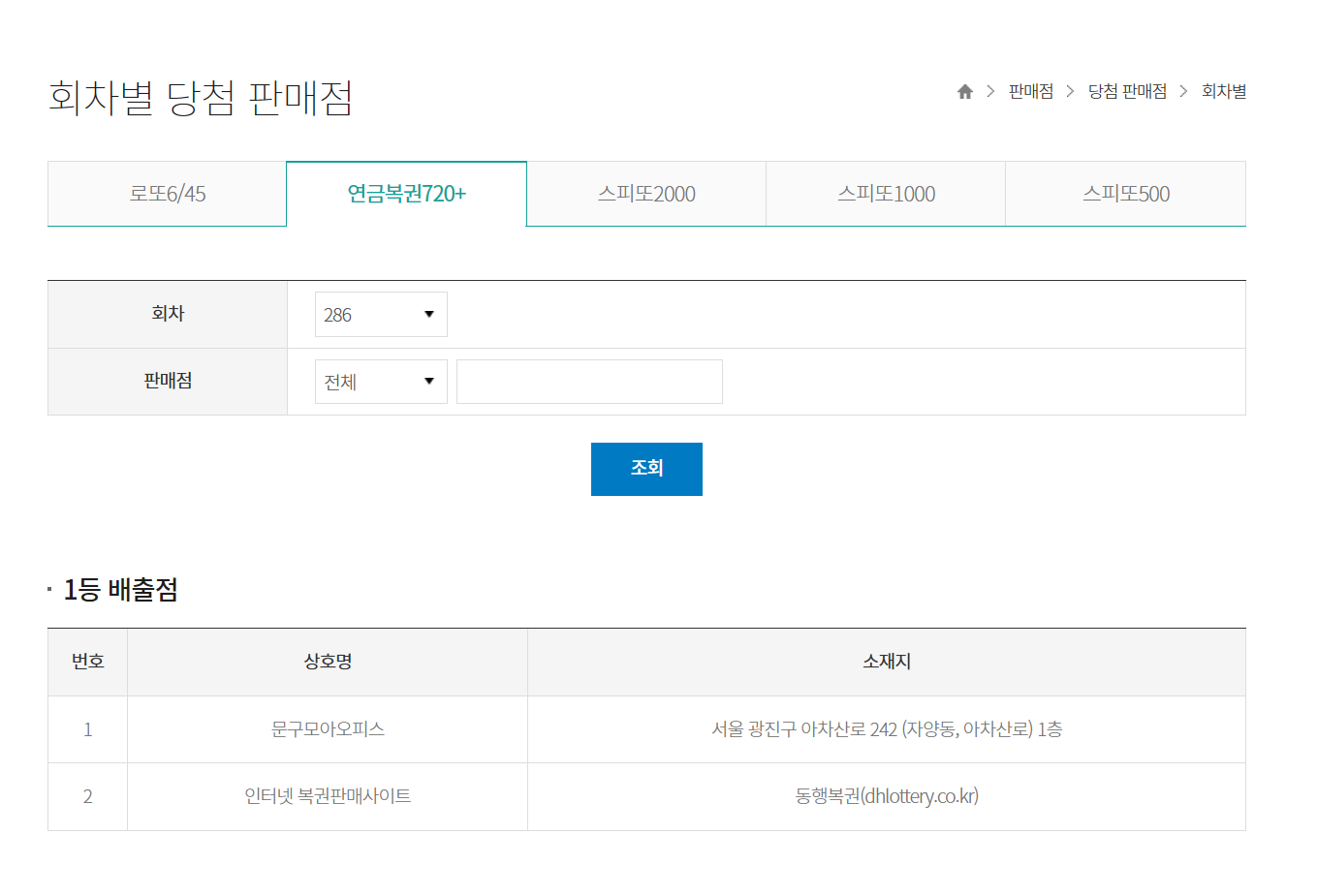 | 287회 연금복권 당첨 번호, 1등 당첨 판매점(1등 배출점), 당첨 결과 입니다 (3) | 2025.10.31 |